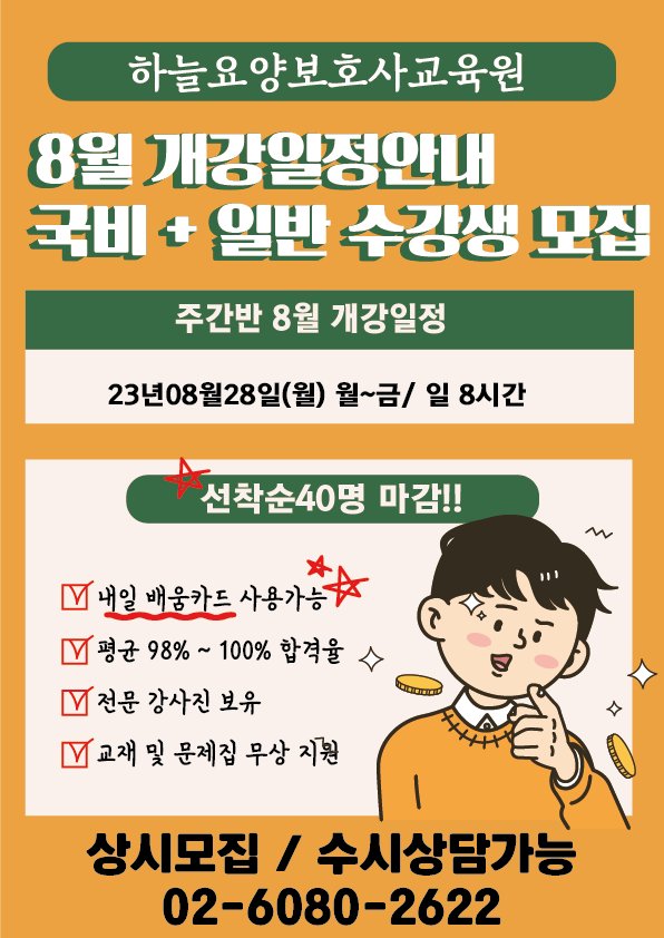 8월 개강반 일정 안내 **내일배움카드 사용가능**